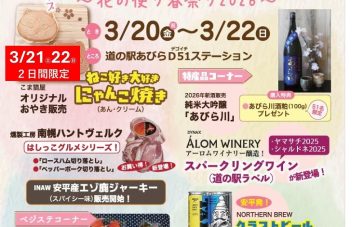 お知らせ 2026.03.09 4月18日・19日開催!! 「鉄道模型フェスinあびらD51ステーション」 2026.03.06 D51ステーション Spring Fair ~花の便り春祭り 2026~のお知らせ 2026.02.25 臨時休館のお知らせ ショップを楽しむ 物産品・ベーカリー テイクアウト 農産物直売 あびらストーリー イベントカレンダー 202603.22D51ステーション Spring Fair ~花の便り春祭り 2026~のお知らせ 202603.21D51ステーション Spring Fair ~花の便り春祭り 2026~のお知らせ 202603.20D51ステーション Spring Fair ~花の便り春祭り 2026~のお知らせ 2026.3イベントのご案内 Sun Mon Tue Wed Thu Fri Sat 1234567 891011121314 151617181920・21・ 22・232425262728 293031 新千歳空港から 車で30分 絶景・あびらの 菜の花畑 鉄道のまち・あびらは SLラストランの地 国内チーズ・ 専門工場発祥の地 名馬の故郷で 感動ふたたび 自慢の糖度 「アサヒメロン」