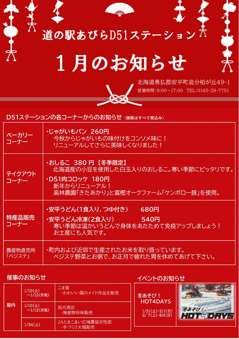 道の駅あびらD51ステーションでは1月4日(日)に「新春企画2026」を開催いたします。