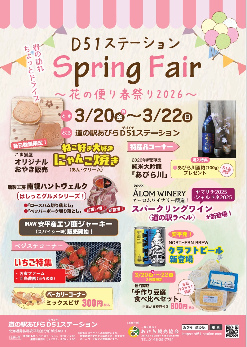 道の駅あびらD51ステーションでは3月20日(金・祝)より「Spring Fair~花の便り春祭り 2026~」を開催いたします。